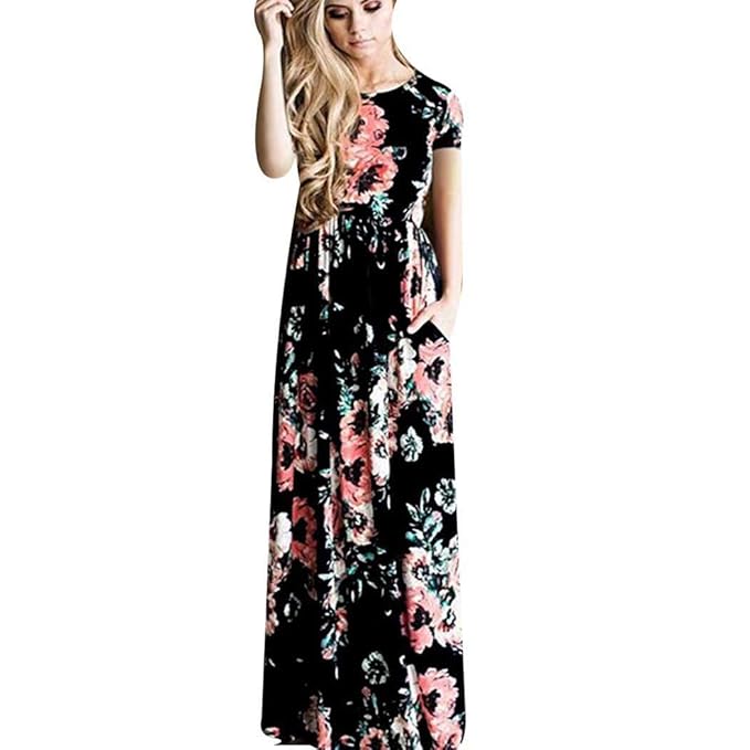 Ladiy Women Short Sleeve Round Neck Floral Print Dress Elegant