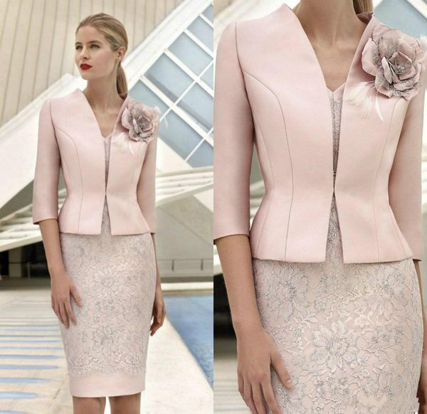 Elegant Pink Mother Of The Bride Dresses With Jacket Lace