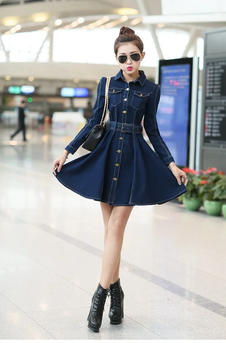 Women Spring Summer Long Sleeve Slim Denim Dresses Female Casual