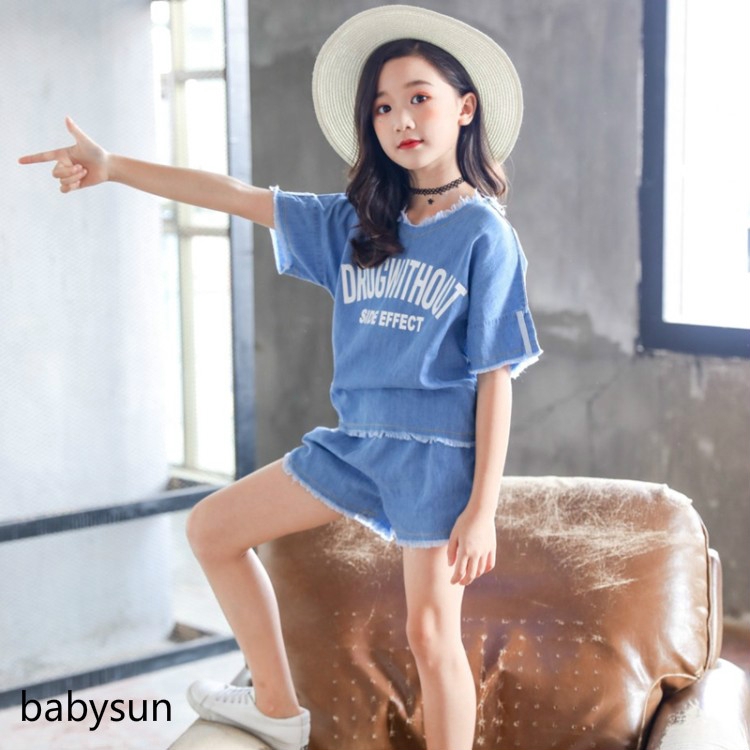 Girl Clothes Suit Summer Fashion Short Sleeve Denim Clothing Girls
