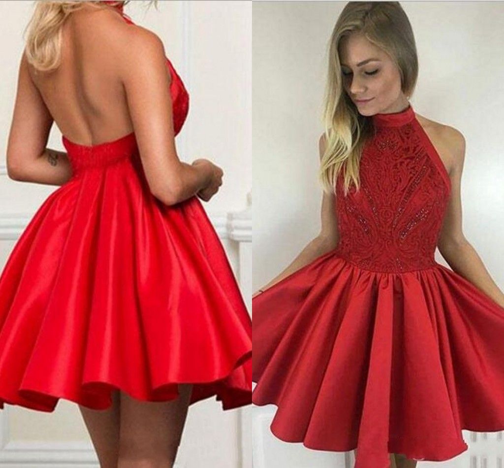 Hot Selling Red Homecoming Dresses High Neck Sexy Open Back