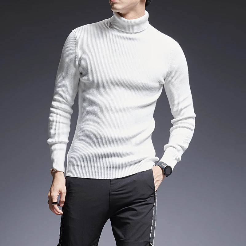 2019 New Fashion Brand Sweater Mens Pullover Turtleneck Slim Fit