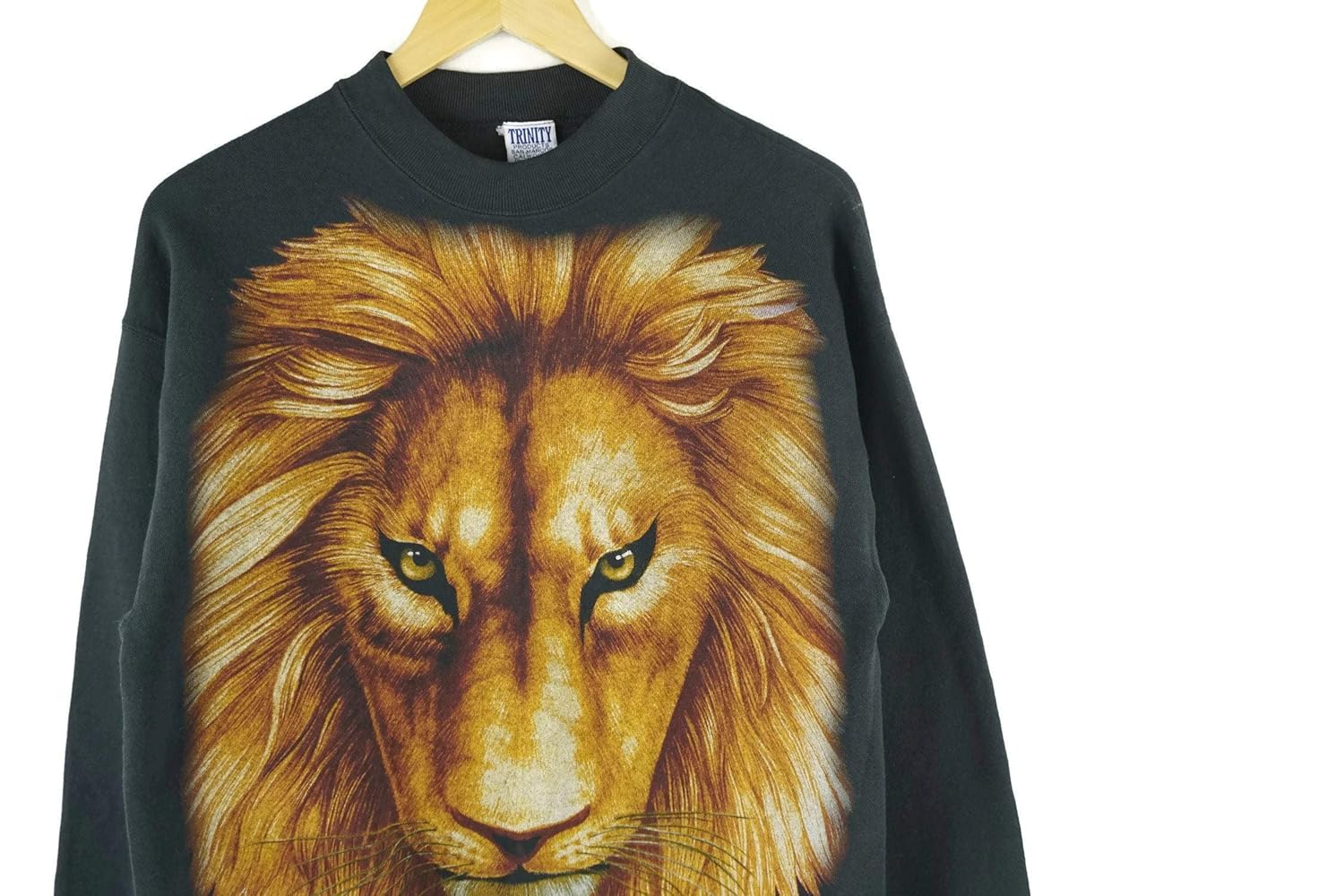Amazon Com Vintage Trinity Lion Head Black Sweatshirt 90s