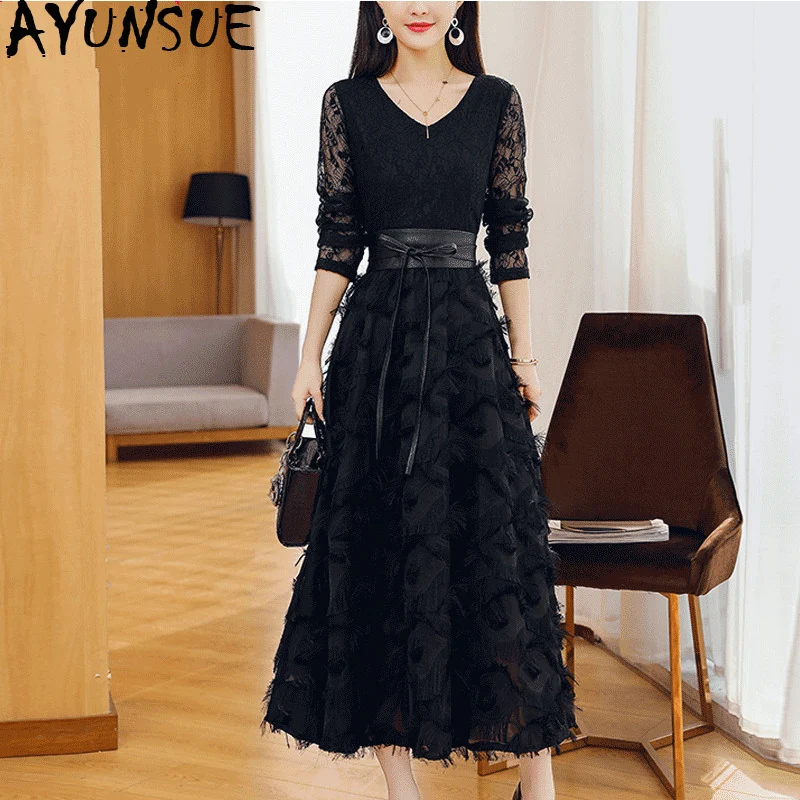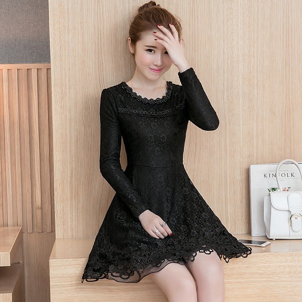 Spring Dress For Women Temperament Black Dresses Korean Lace Long