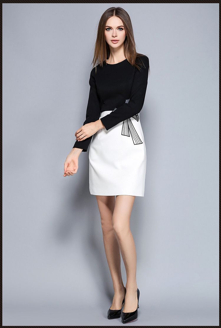 Ladies Black Dress White Collar Fashion Korean Style Embroidery