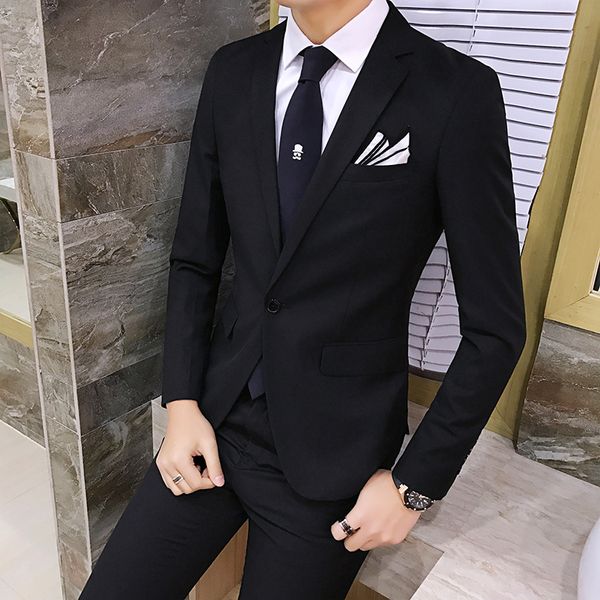 2019 2018 New Fashion Korean Style Slim Black Mens Suit With Pants