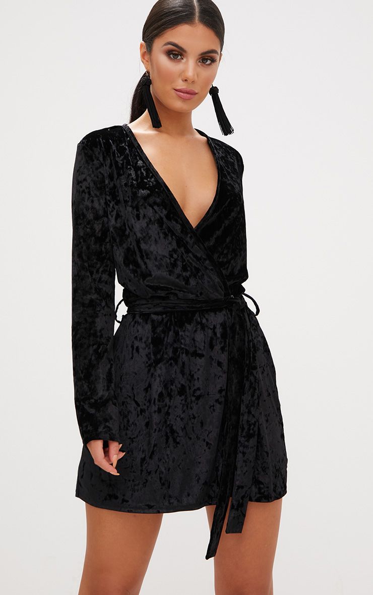 Black Velvet Wrap Dress Little Black Dress Short Dresses