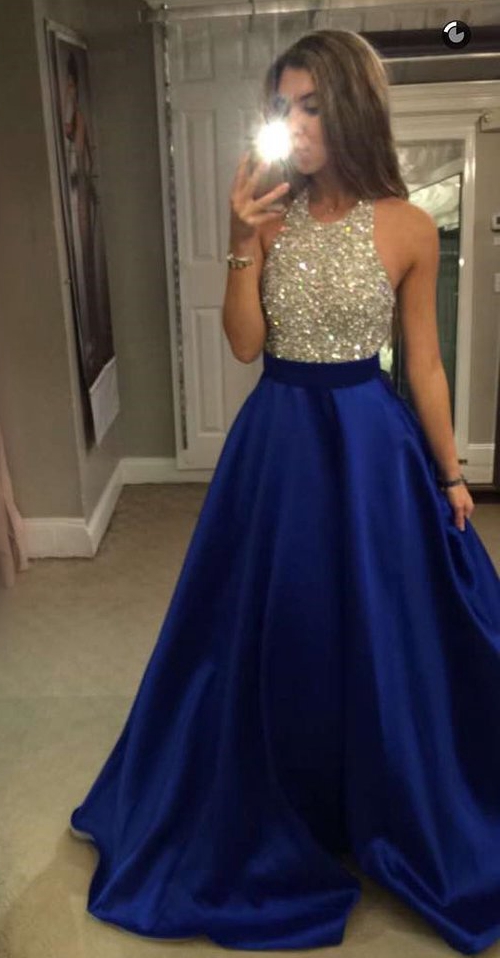 Royal Blue Two Pieces Prom Dress Fashion Winter Dance Dress Sd119