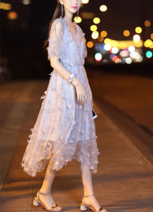 Buy Crystal Korea Fashion New Temperament Slim V Neck Lace Dress