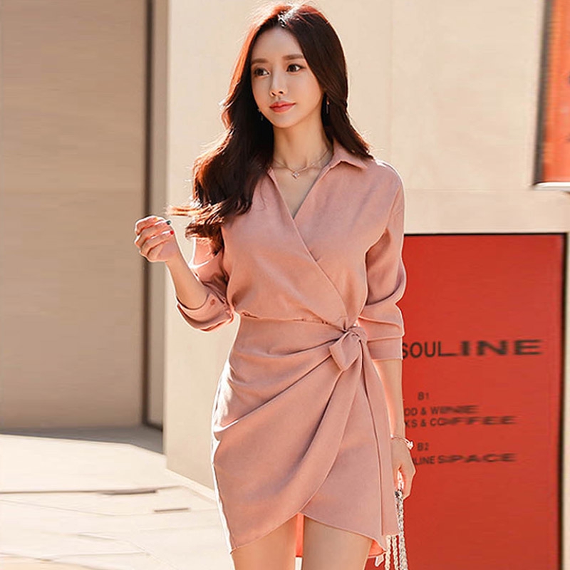 Hot Sales Korean New Ol Temperament Women Slim Sexy Shirt Dress