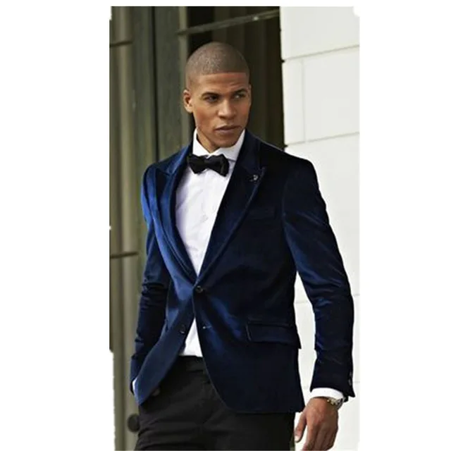 2018 New Costume Homme Navy Blue Velvet Tuxedos Blazer Groomsman