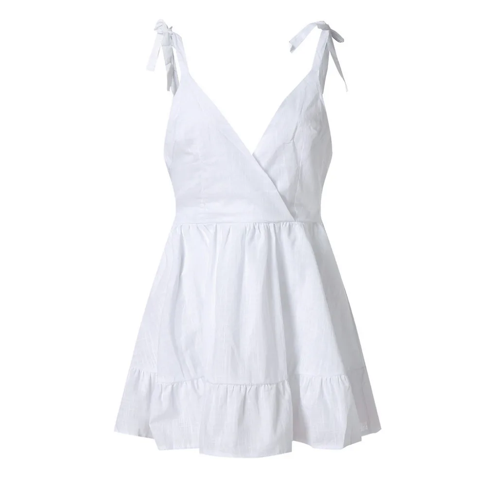 Woman Solid High Quality Halter Dress Sling Sleeveless Casual