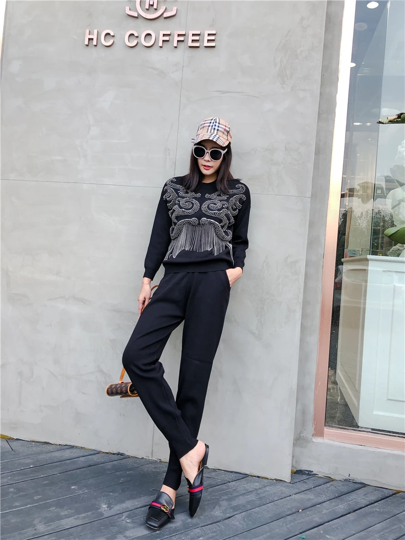 2019 Womens Clothing Sets Two Pieces Knit Fashion Clothes Korean
