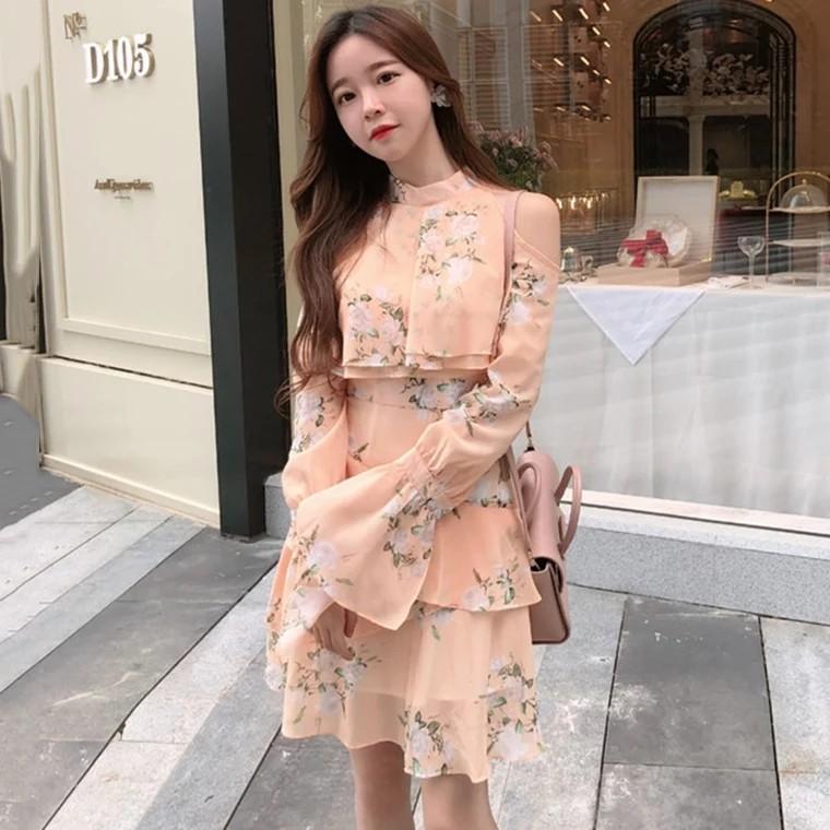 Qoo10 8820 Early Autumn Long Sleeve Chiffon Floral Dress Korean