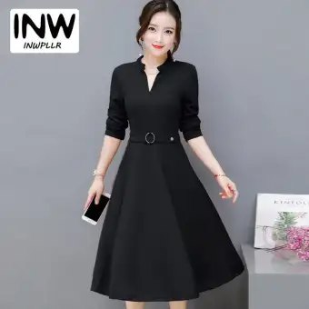 Inwpllr Women S Fashion Dresses Korean Style Long Sleeve Dress