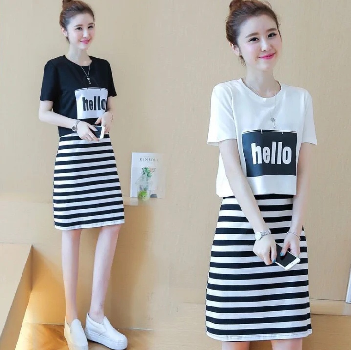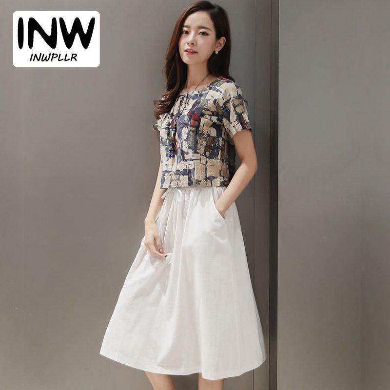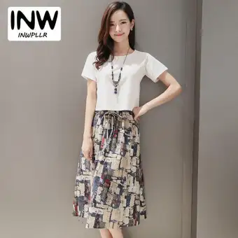 Inwpllr Two Piece Dresses Korean Style Short Sleeve Women Dress