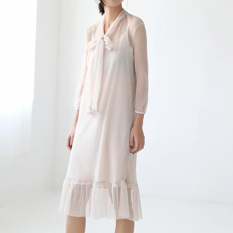 B20769a Korean Style Lady Net Yarn Dress See Through Two Pieces