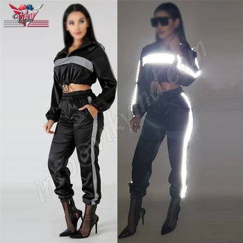 2019 Fashion Reflective Women Tracksuit Autumn Winter Piece Set