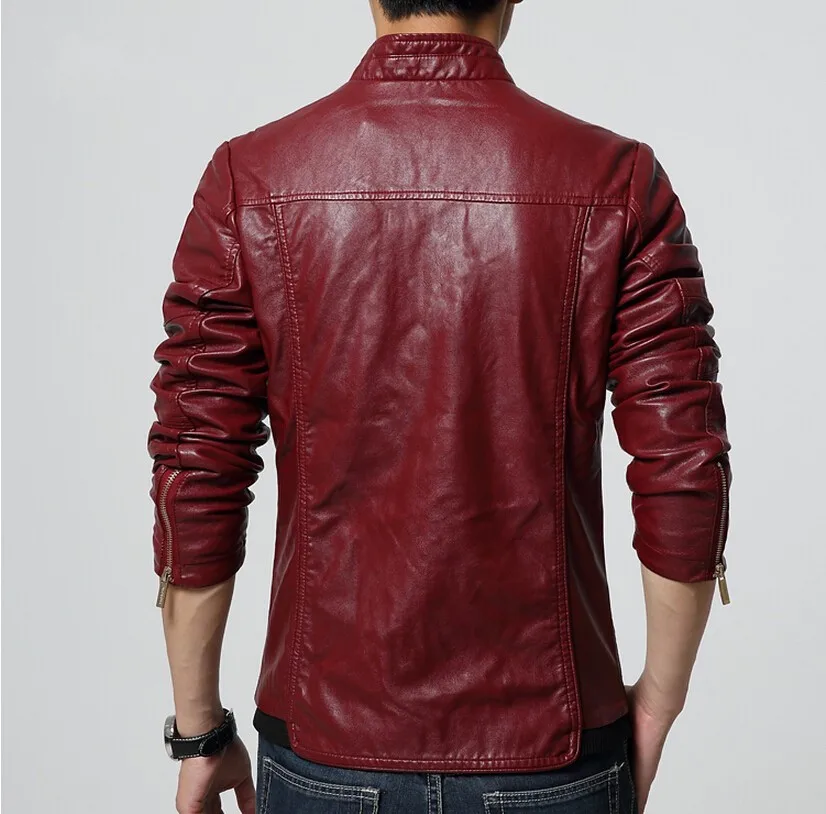 Men S Designer Maroon Red Slim Fit Biker Leather Jacket Fashion