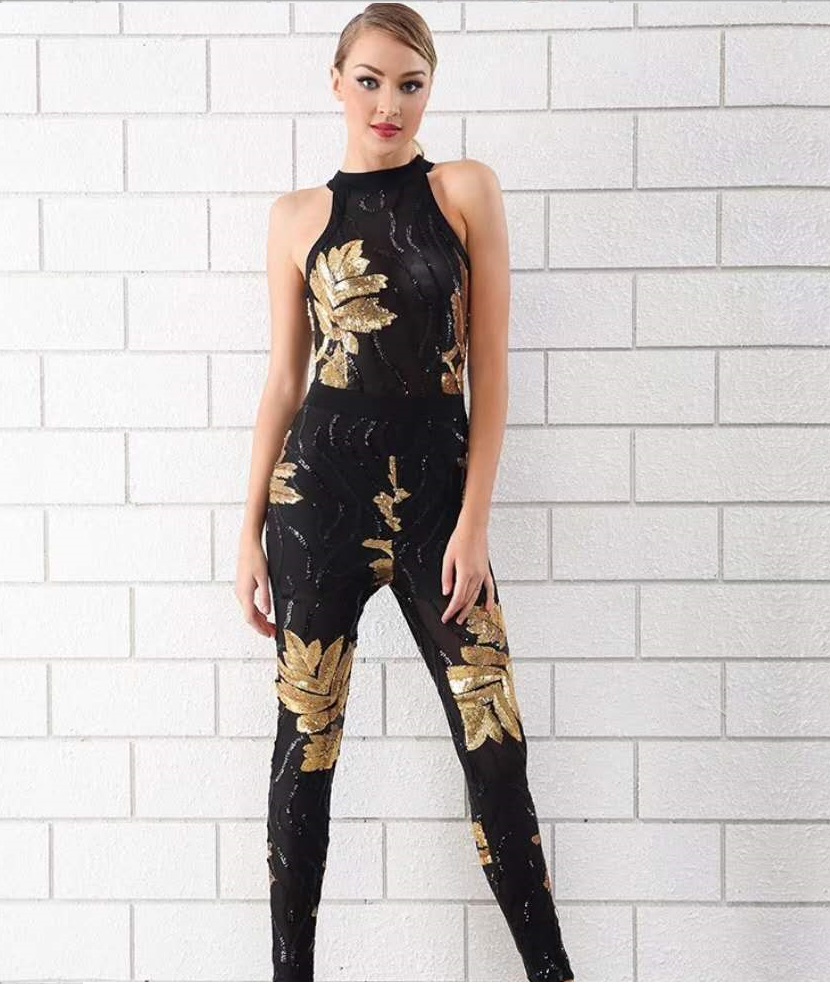 Hot Selling Fashion Sleeveless Sequins Women Mature Jumpsuit For