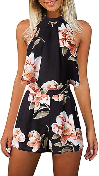 2019 Women Summer Fashion Print Polka Dot Halter Jumpsuit Shorts