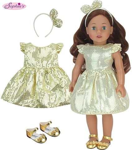 Amazon Com Sophia S Gold Sequin Dress Headband And Shoes For 18