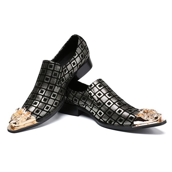 Fashion Men Party Wedding Handmade Loafers Men Print Leather Gold