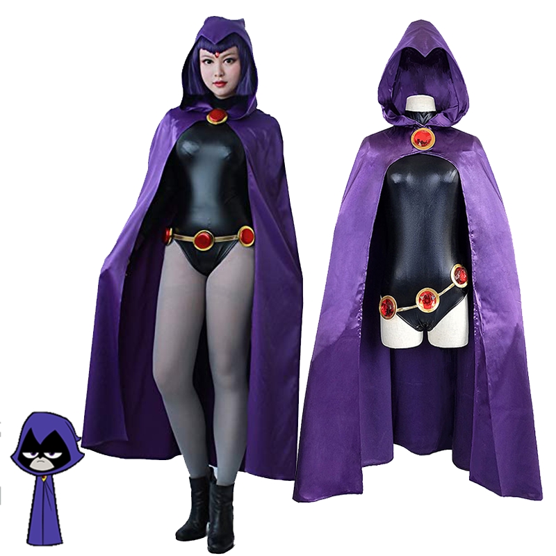 Anime Teen Titan Raven Costume Comic Superhero Cosplay Jumpsuit