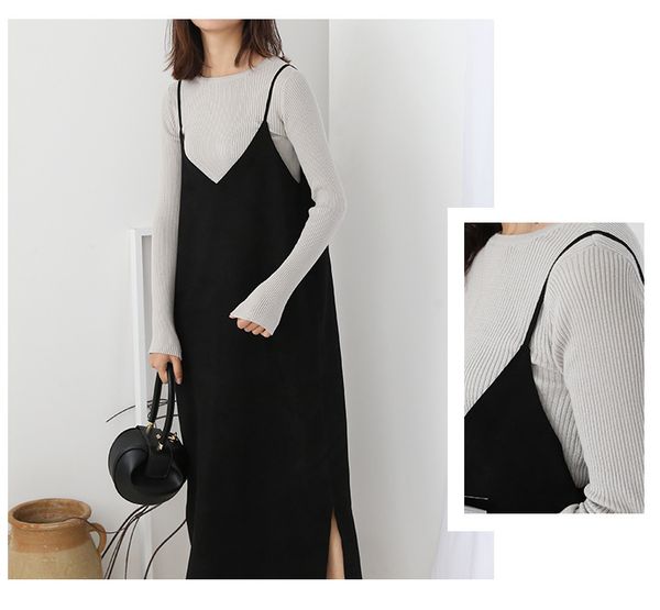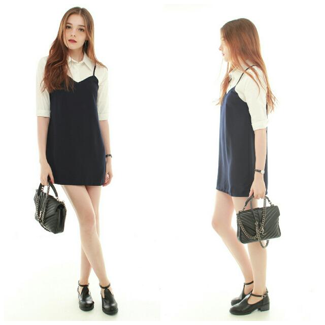 Anticloclwise Faux 2 Piece Korean Style Slip Dress Women S