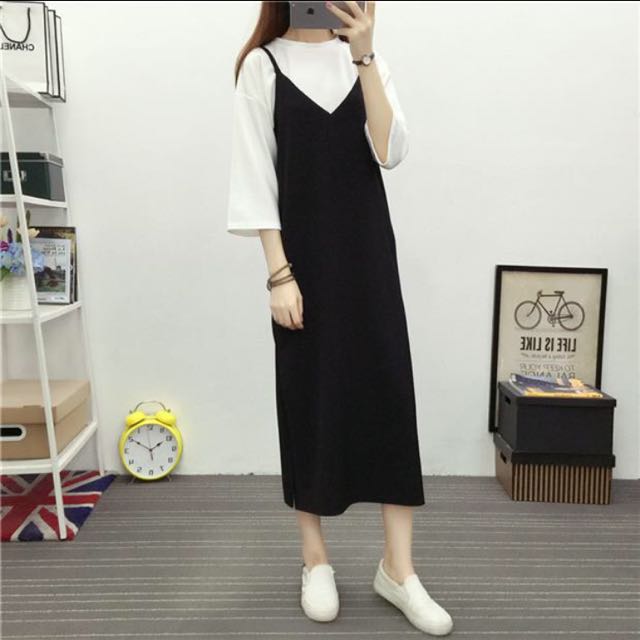 Bn Korean Two Piece Slip Dress Black Women S Fashion Clothes