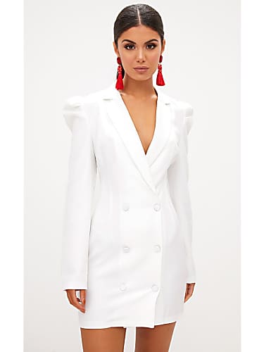 White Cold Shoulder Blazer Dress Dresses Prettylittlething