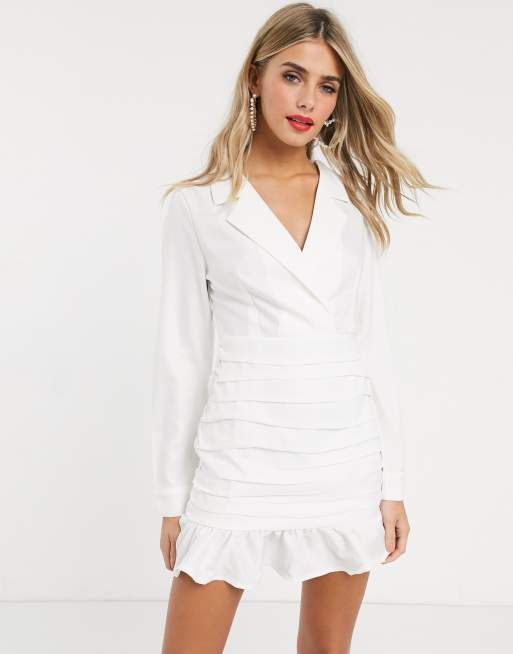 In The Style White Plunge Front Ruched Detail Mini Blazer Dress In