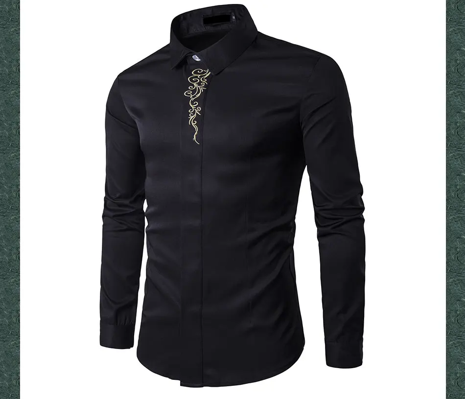 2019 2018 Spring Autumn Shirts Outfit Embroidery Long Sleeve Men
