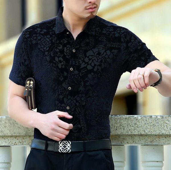 Men Summer Short Sleeved Smart Casual Silk Shirts Mens Dragon