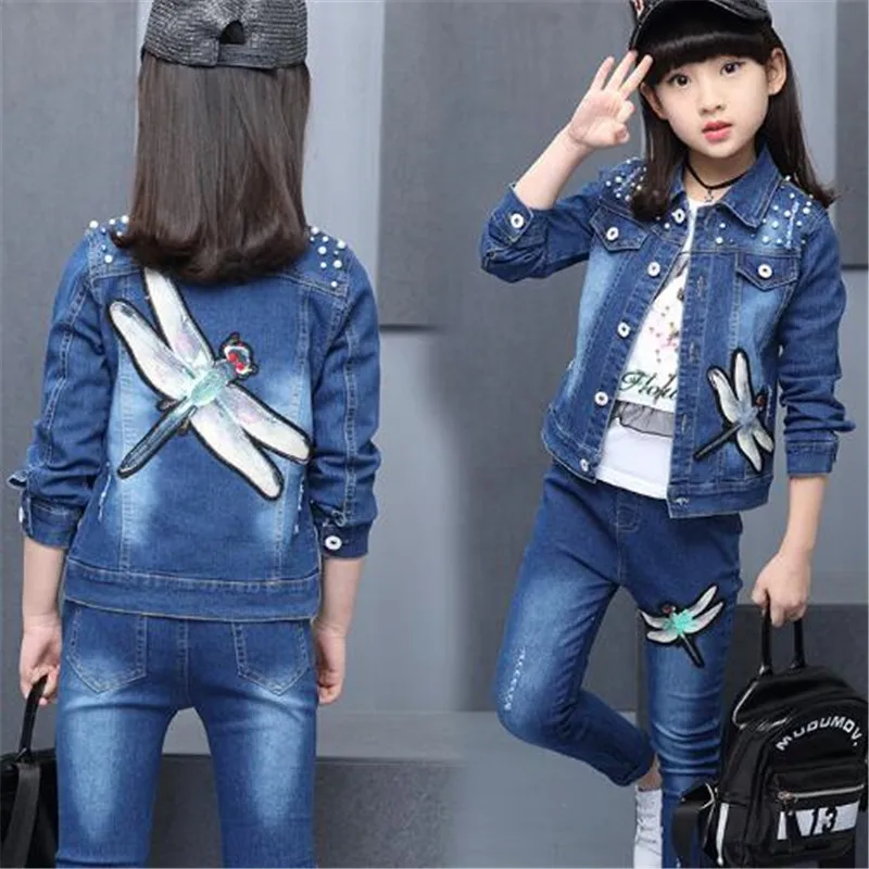 2019 2018 Autumn Girls Clothes Set Two Piece Coat Pants Solid