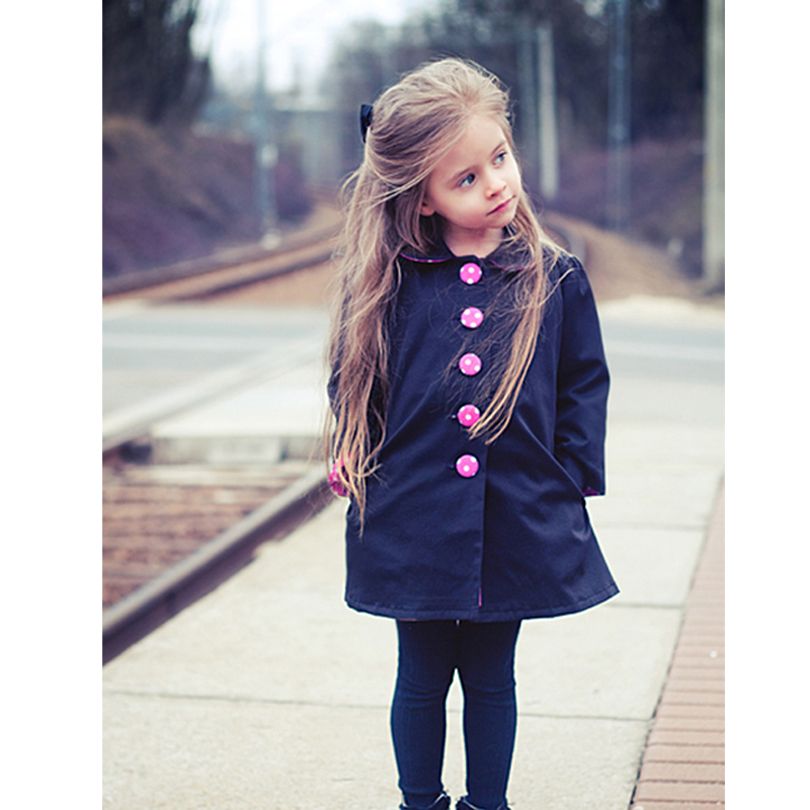 Girl Winter Coat Outfit Kid Navy Overcoat Pink Button Long Sleeve