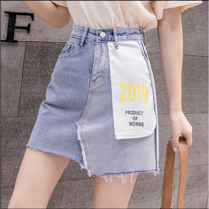 Fashion Letter Fur Edge Denim Skirt 2019 Summer Women Outfits High